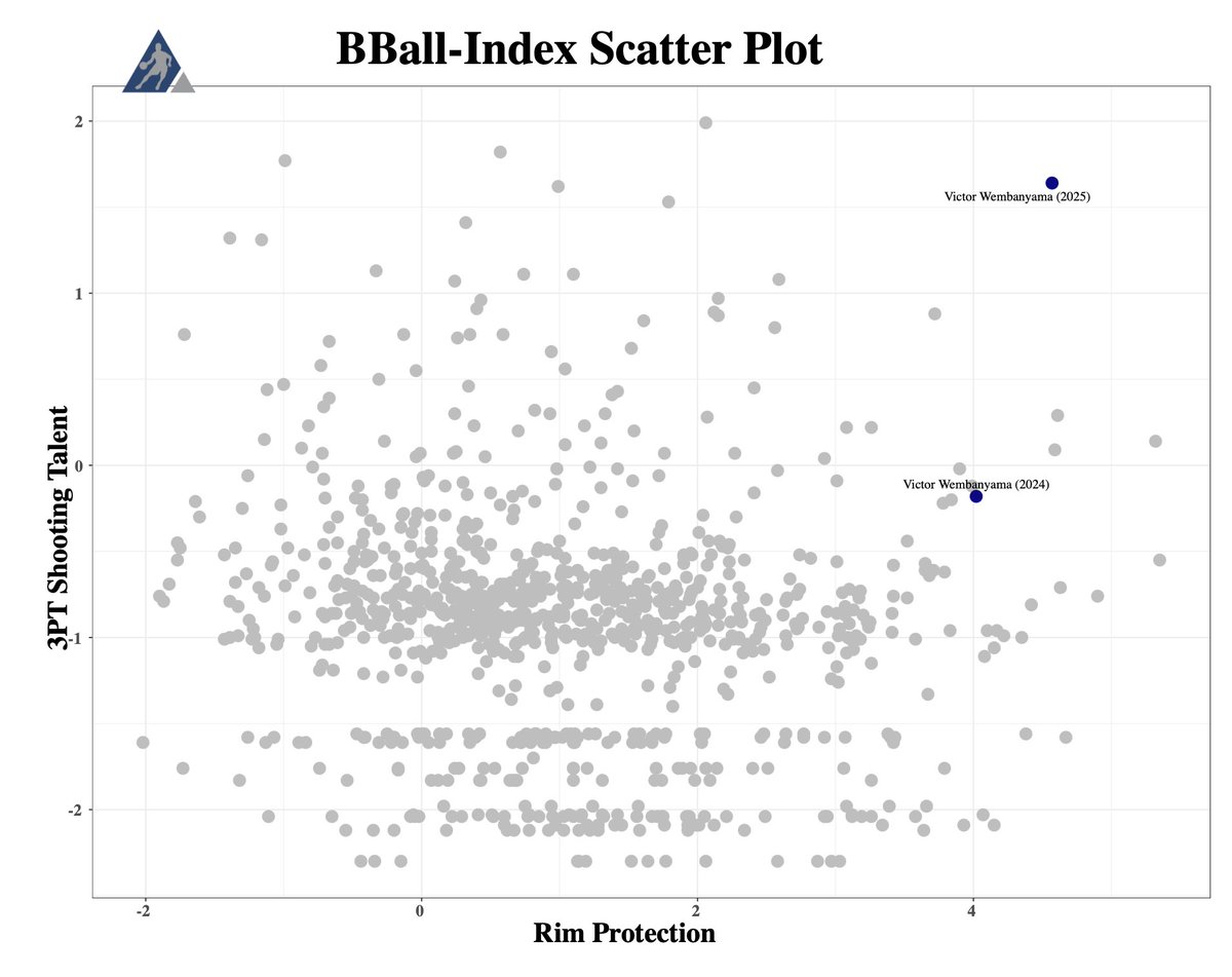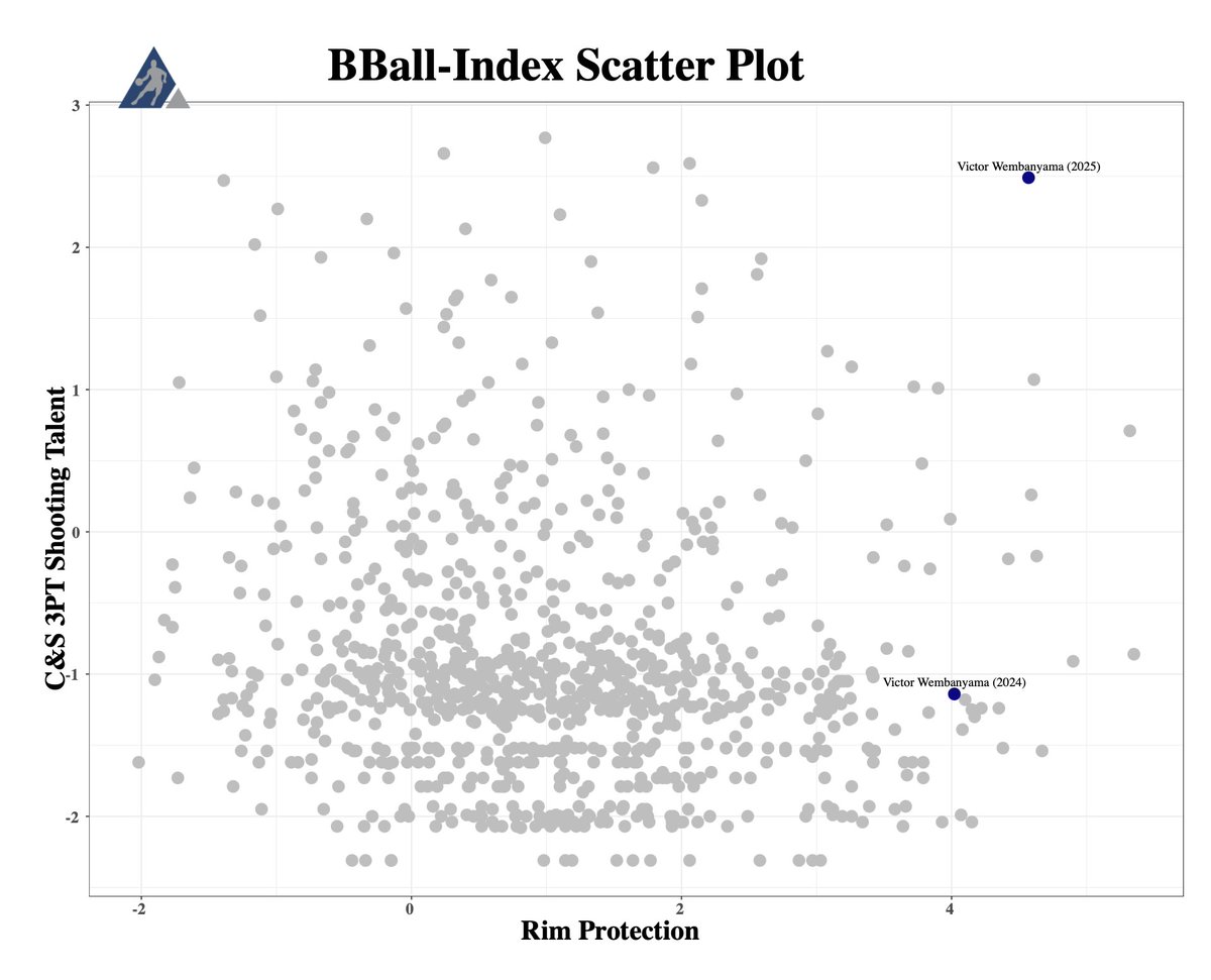 Is Wemby already the best 3pt shooting rim protector in NBA history? He’s certainly having the best season of all-time in that regard pic.twitter.com/yOcp7L1FJ6