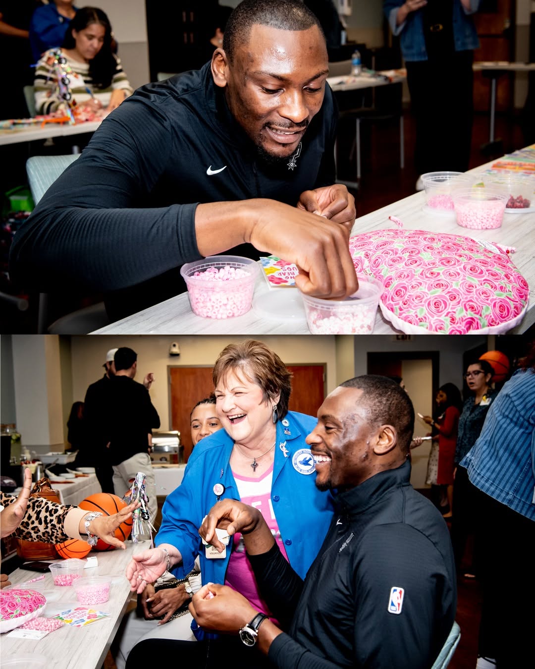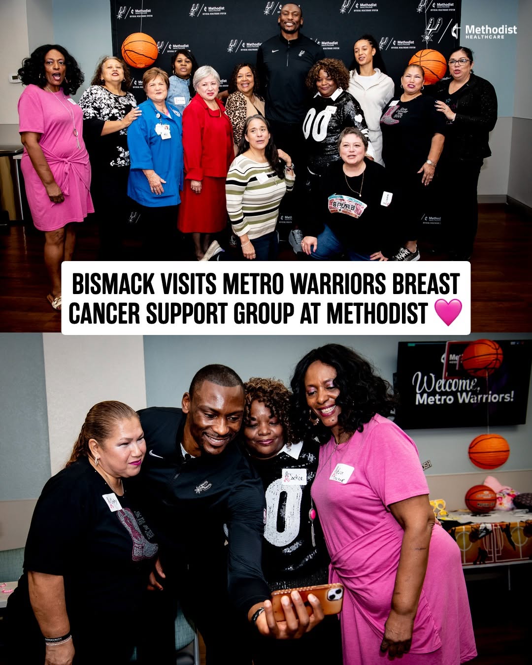 “@bismackbiyombo recently spent time with @methodisthealthcaresa‘s Metro Warriors Breast Cancer Support Group for a day of laughs, crafts and heartwarming moments ahead of our Box Out Cancer Night on Saturday.“