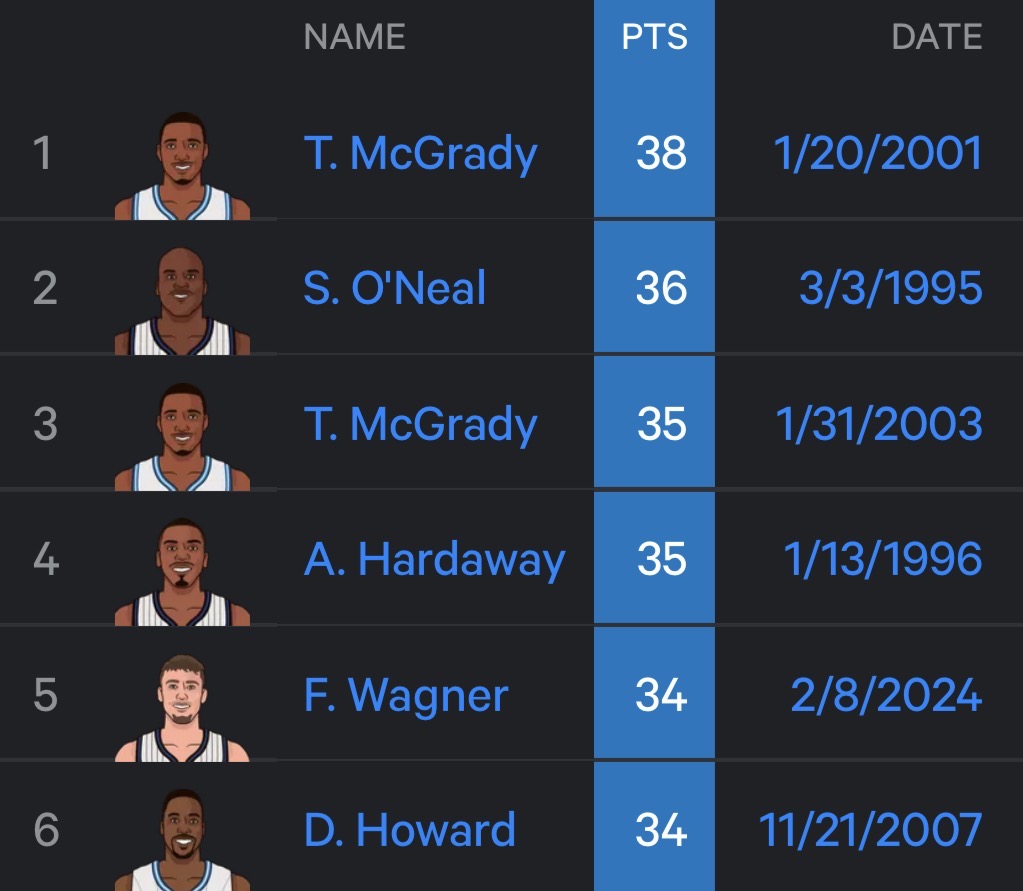 魔术队史球员对阵马刺单场得分榜: