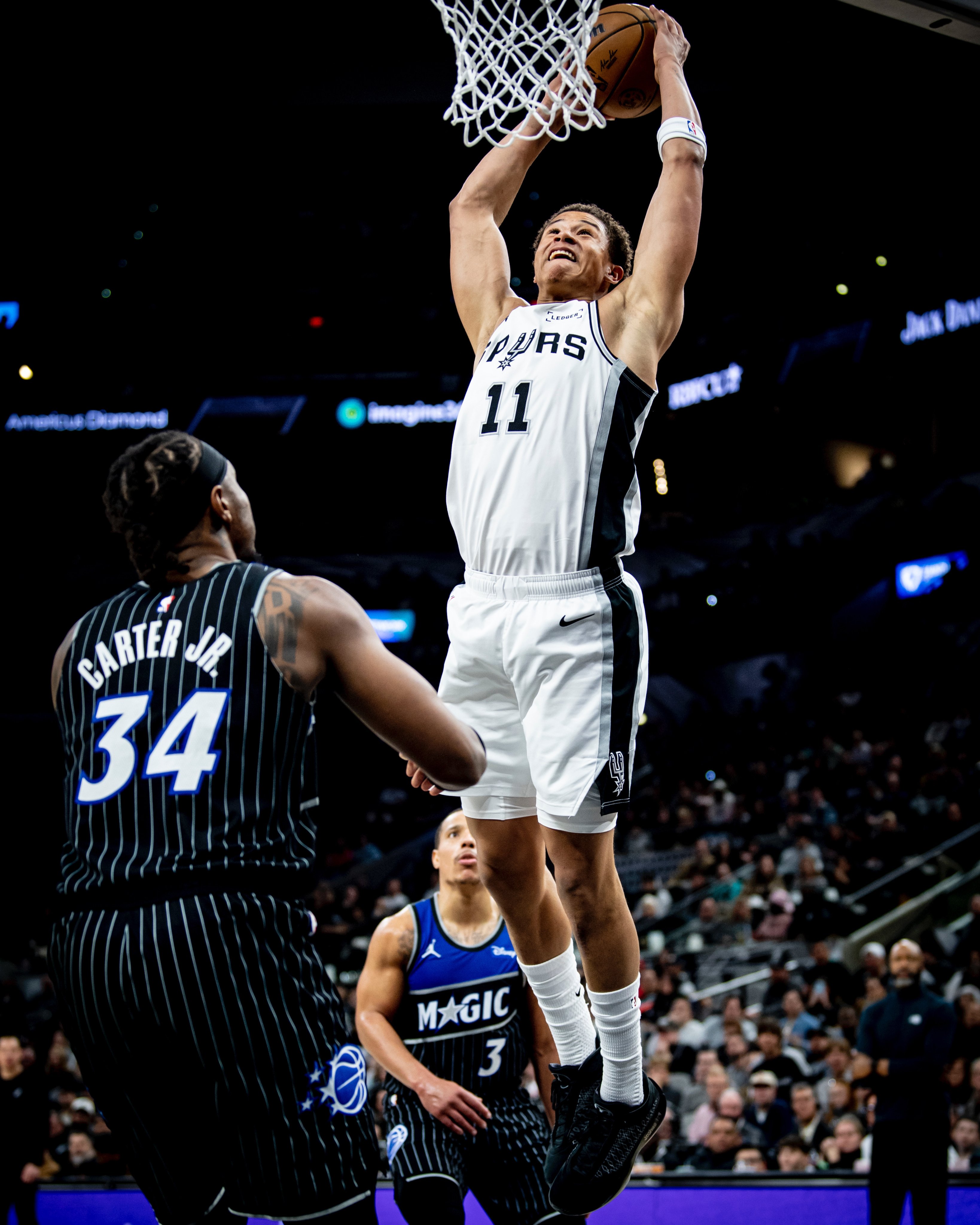 Victor Wembanyama took the unnecessary hit, ate it, and came back with straight power on the other end. That’s exactly the kind of response Spurs fans want to see every single trip.
