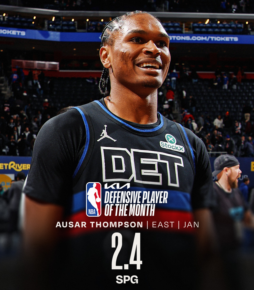 报道:维克托·文班亚马 (Victor Wembanyama) 与奥萨尔·汤普森 (Ausar Thompson) 当选月最佳防守球员。